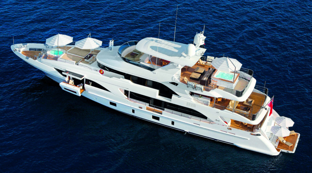 la cabina armatoriale, ad esempio, si caratterizza per il terrazzo esterno estensibile che permette di avere una veranda privata che si affaccia sul mare, mentre a prua sull’upper-deck e sul sun-deck c’è una doppia Jacuzzi. Il sun-deck è di ben 100 mq e si divide in quattro zone ottimamente divise, per avere la totale privacy degli ospiti.