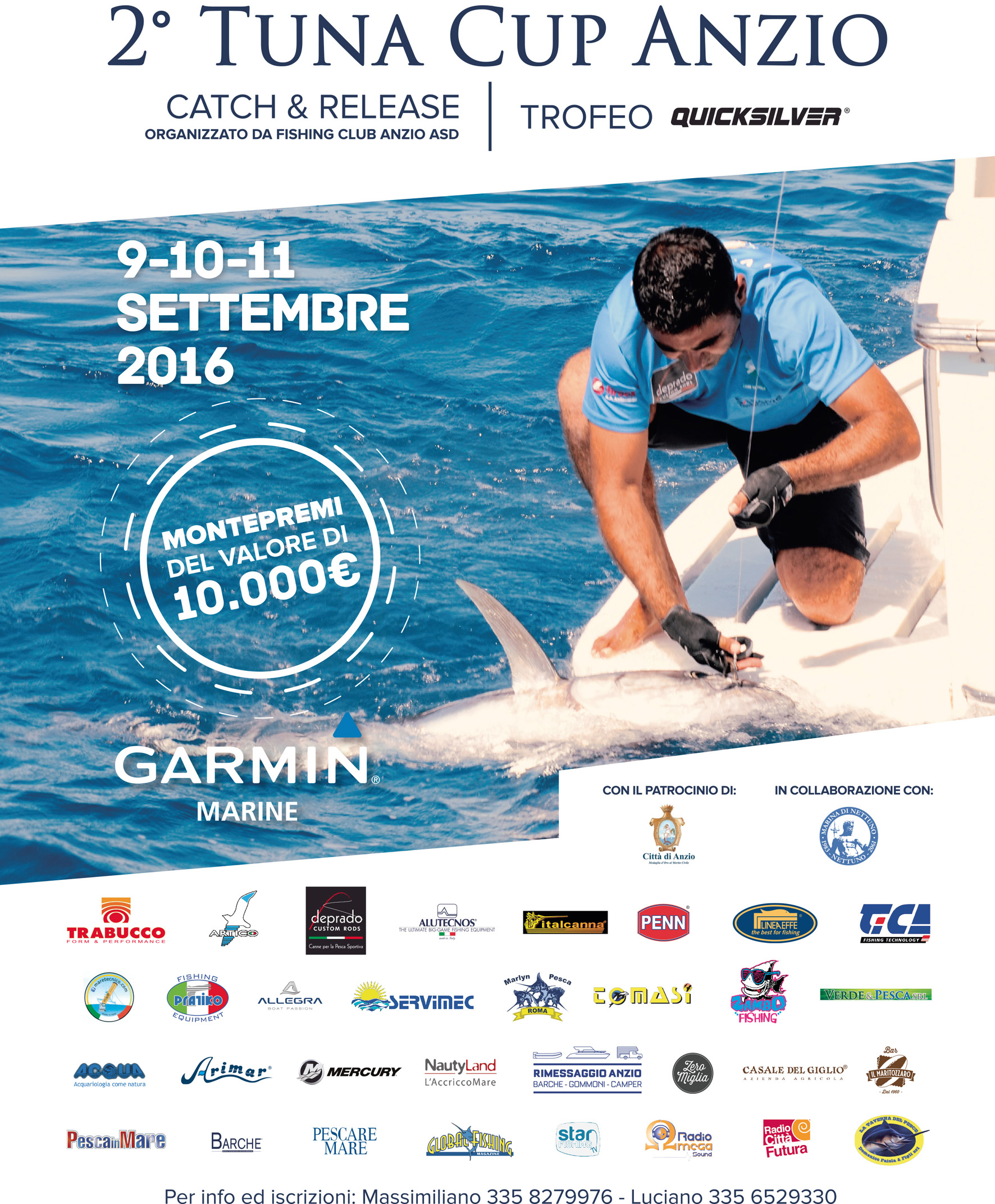 Per il secondo anno consecutivo il 9-10 e 11 settembre l’appuntamento per gli amanti della pesca è il TUNA CUP ANZIO – TROFEO QUICKSILVER 2016, in programma nelle acque antistanti Anzio e Nettuno, con base logistica all’interno del Marina di Nettuno.