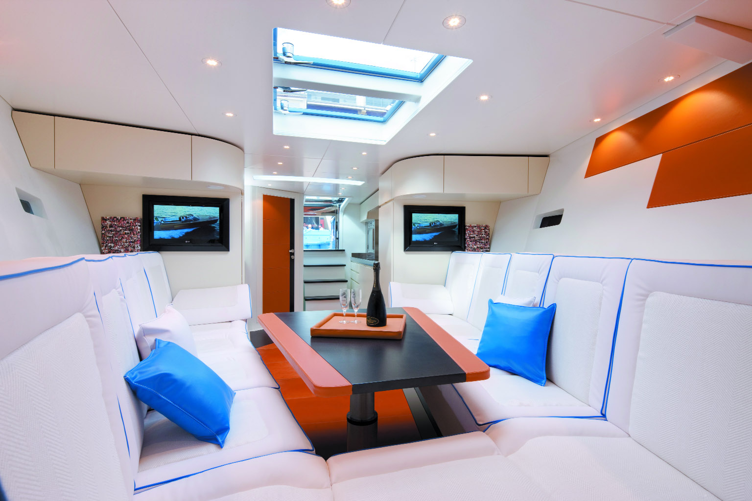 La customizzazione degli ambienti interni, inoltre, può coinvolgere sia i materiali che i tessuti, l’illuminazione e le dotazioni elettroniche; a seconda delle esigenze dell’armatore, poi, si possono scegliere allestimenti a una o due cabine, open space e, ancora con l’aggiunta della cabina equipaggio.