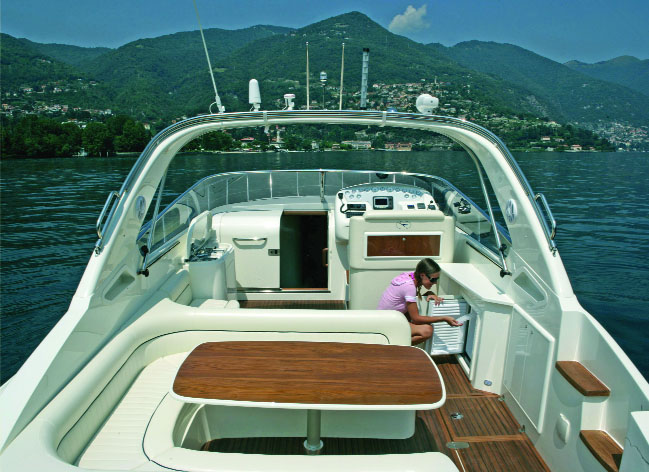 Gli accessori standard del modello 388 sono: volante – timoneria monacavo – parabrezza avvolgente in perspex – pulpito prua inox con draglia – 2 bitte di prua – 2 bitte di poppa – 8 ganci per parabordi – 2 vani porta cime a poppa – poltrona di guida regolabile – prendisole di poppa – divano copilota a “L” con sottostanti ripostigli – divano a “C” trasformabile in prendisole – tavolo esterno manuale – scarpiera esterna – mobile esterno con lavello – cancelletto inox – plancetta di poppa con scaletta bagno a scomparsa – strumentazione completa motori – bussola – avvisatore acustico – apertura cofano motori elettrica – 2 batterie 120Amp/h cad. – 2 batterie 160Amp/h per servizi – ripartitore di carica – 4 staccabatterie – caricabatteria 700A – quadro elettrico con magnetotermici – presa 12V – doccia esterna pressurizzata – serbatoio carburante 700 lt circa – tappo imbarco carburante inox – sfiato serbatoio carburante – tappo inox imbarco acqua dolce – impianto acqua calda – prefiltri racor – impianto antincendio automatico – 2 vani porta oggetti sotto roll-bar – roll-bar completo di luci – vano porta zattera – porta scorrevole in plex – frigorifero 50lt esterno – fanali di via regolamentari – asta portabandiera – 2 armadietti di prua – TV LCD15″ – cucina con lavello, piastra vetroceramica, frigo 85lt, ripostiglio per piatti, ripostiglio per pentole, cassettiera – gruppo WC elettrico – dinette a “C” con tavolo intarsiato – gavone sotto scala – gavoni sotto letti – 2 passouomo – 9 oblò laterali – pavimentazione interna in teak – moquette nelle camerette – camera di prua separata – camera di poppa separata – sinto CD – teak plancetta – 2 pompe di sentina prua – 1 pompa di sentina poppa – 1 pompa di sentina manuale – verricello 1000 W con ancora e catena 50 mt circa – interruttori verricello prua – scudo prua inox – manuale del proprietario.