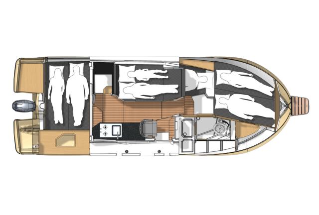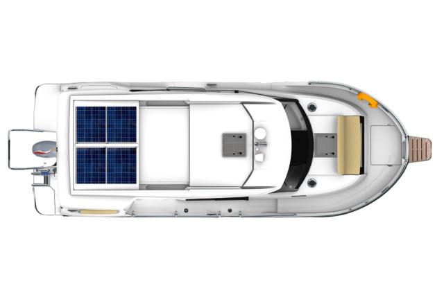 La peculiarità dell?imbarcazione è data dal doppio tettuccio scorrevole apribile che rende la barca molto flessibile. Puoi arieggiare o ombreggiare il pozzetto, la dinette, il soggiorno, a tuo piacimento, in pochi semplici movimenti. In sostanza è come avere una barca cabrio, a scelta.