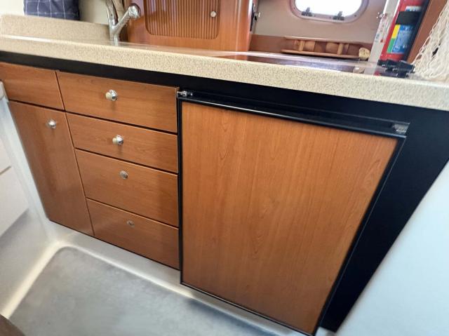 Gli interni offrono due cabine (prua e poppa), dinette convertibile, cucina attrezzata con lavello, frigo, piano cottura e microonde, oltre a bagno completo con doccia. Tutto pensato per accogliere fino a 4 persone con il massimo comfort, perfetto per crociere di un weekend o vacanze estive.