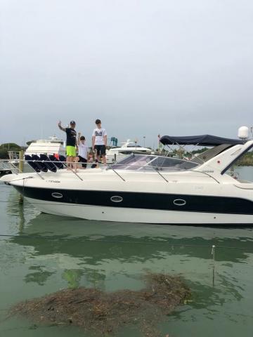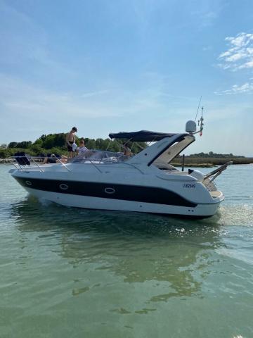 Sessa C30 con 2 motori VOLVO PENTA 2 X D3 163 CV con circa 1150 ore di moto. Plancetta di poppa in teak NUOVA RIFATTA 2021 con scaletta bagno a scomparsa inox+teak, docceta caldo/freddo, presa banchina. Pozzetto in vetroresina, divano con tavolo pranzo, mobile bar con lavabo e ghiacciaia, chaiselongue, consolle di guida con sedile sportivo pilota. Prendisole di prua, passaggio centrale parabrezza gradini in teak Cabina con cucina con piano cottura, stipetti, piano di lavoro, frigorifero, vano cambusa. Dinette pranzo con tavolo trasformabile in letto matrimoniale, oblò + passouomo, cuscineria completa. Locale bagno separato con lavabo, WC elettrico e doccia, stipetti, oblò. Cabina di poppa separata con porta, disimpegno con portaoggetti e specchio, armadio, letto matrimoniale a tutto baglio, oblò.