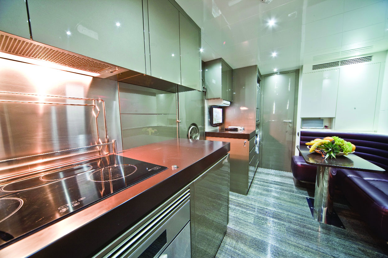 Molte sono le possibilità di personalizzazione del restante dello spazio, che è stato appositamente lasciato sgombro e che caratterizza il livello semi-custom di questo yacht.