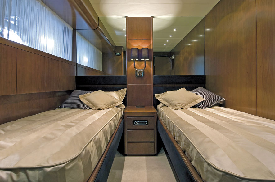 Per garantire la massima privacy all’armatore e agli ospiti a bordo, due cabine con bagno per l’equipaggio si trovano nella zona estrema della prua.