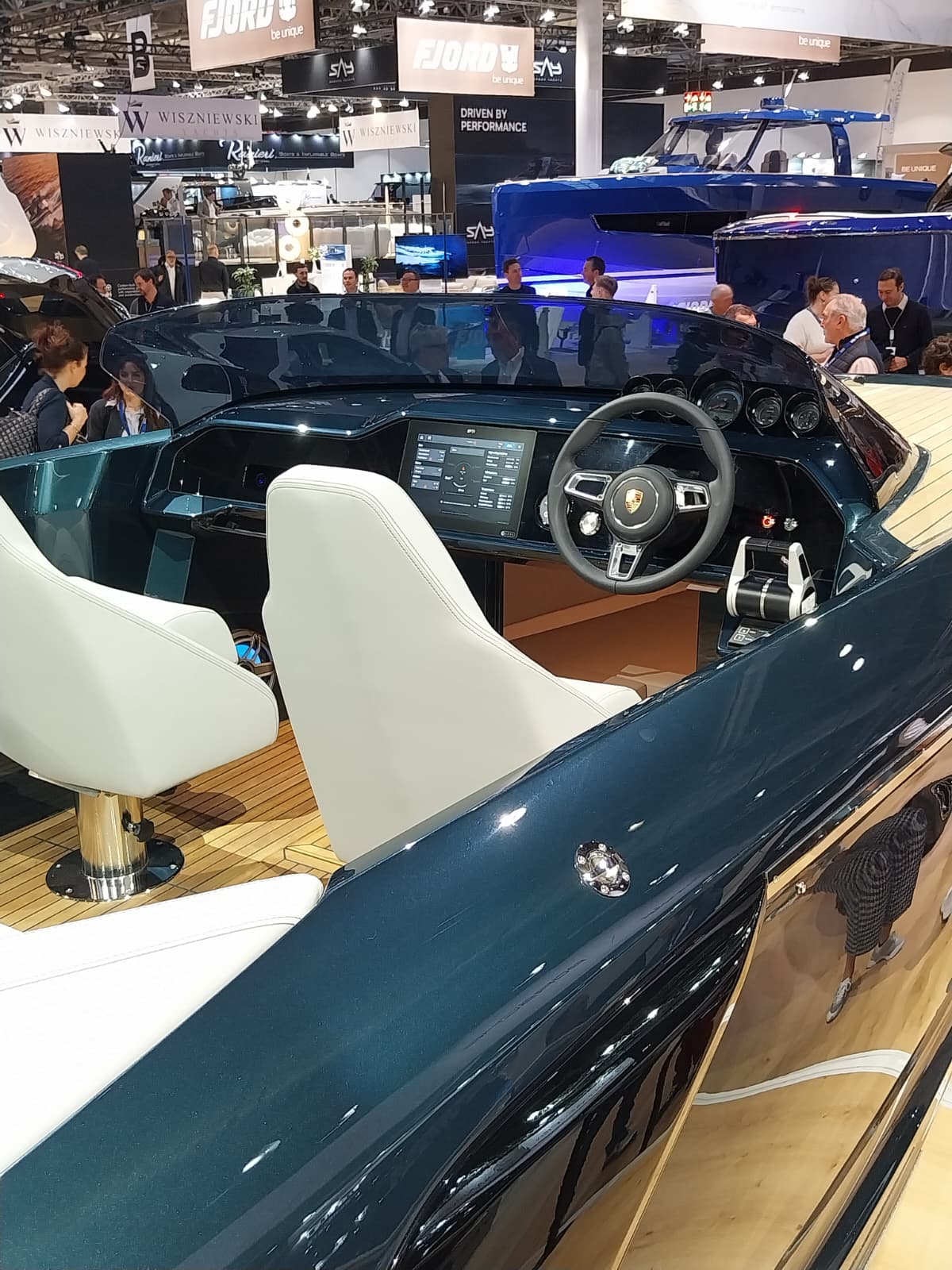 Accanto al motoscafo, sullo stand Frauscher, è stata svelata anche la Porsche Macan Turbo Concept Lago, una concept car ampiamente personalizzata che condivide con l’imbarcazione numerosi dettagli stilistici. Presente inoltre la nuova Porsche Cayenne Electric, alla sua prima apparizione in Germania.