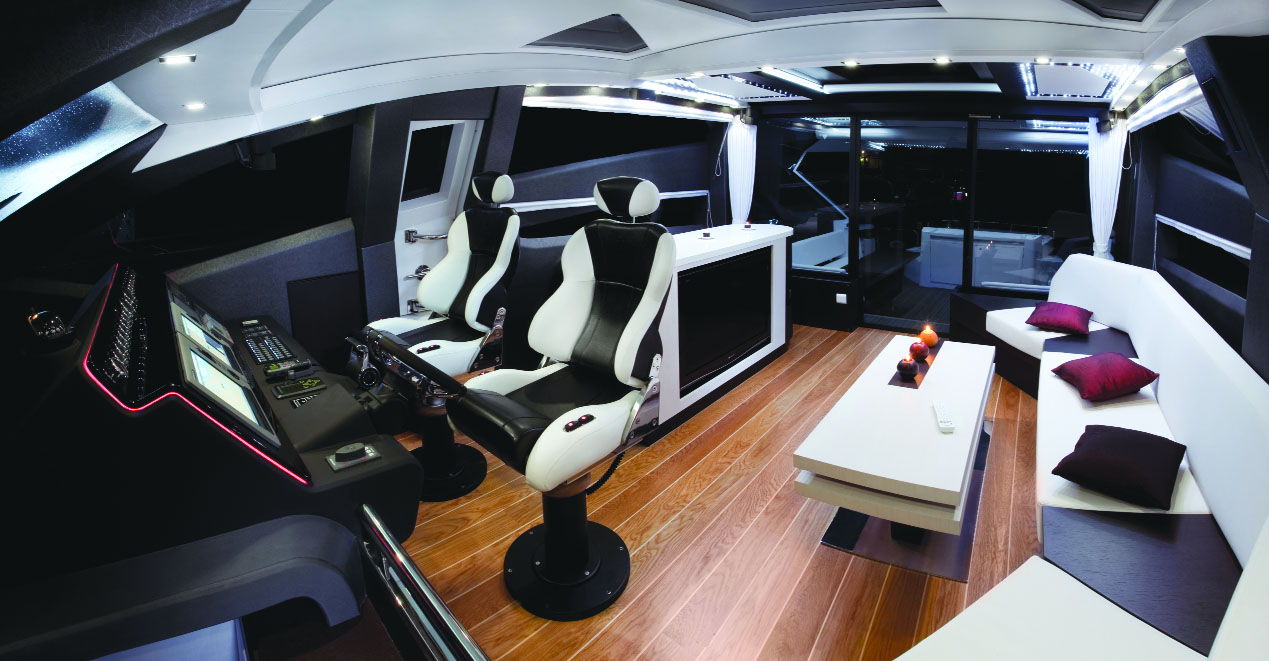 Gli interni sono caratterizzati da legnami esotici, pelle e vetro, tutti materiali di grande eleganza e modernità, che contribuiscono a rendere questi ambienti unici e votati al relax.