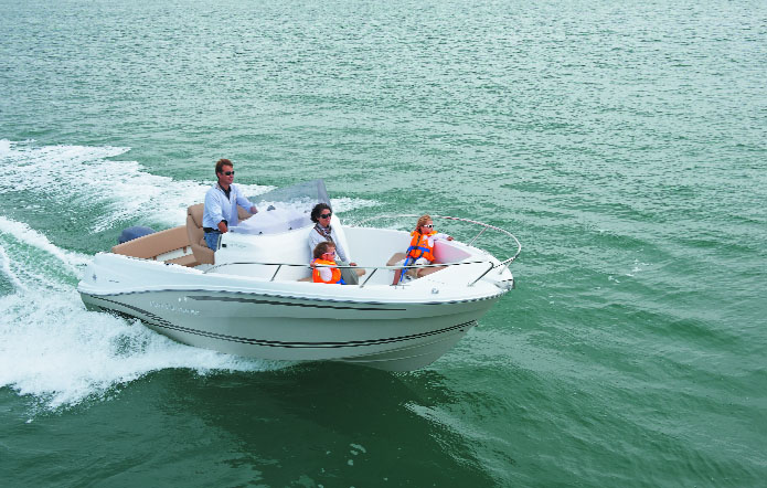 Lo stile generale si rafforza con una consolle scolpita che richiama il superbo Cap Camarat 8.5 CC, uno scafo più protetto, e un disegno armonioso delle fiancate dello scafo. Scheda tecnica: lunghezza f.t. 6,34 m; larghezza max 2,48 m; peso senza motore 1.000 kg; pescaggio 0,45 m; capacità serbatoio carburante 170 l; prezzo Euro 15.850,00.