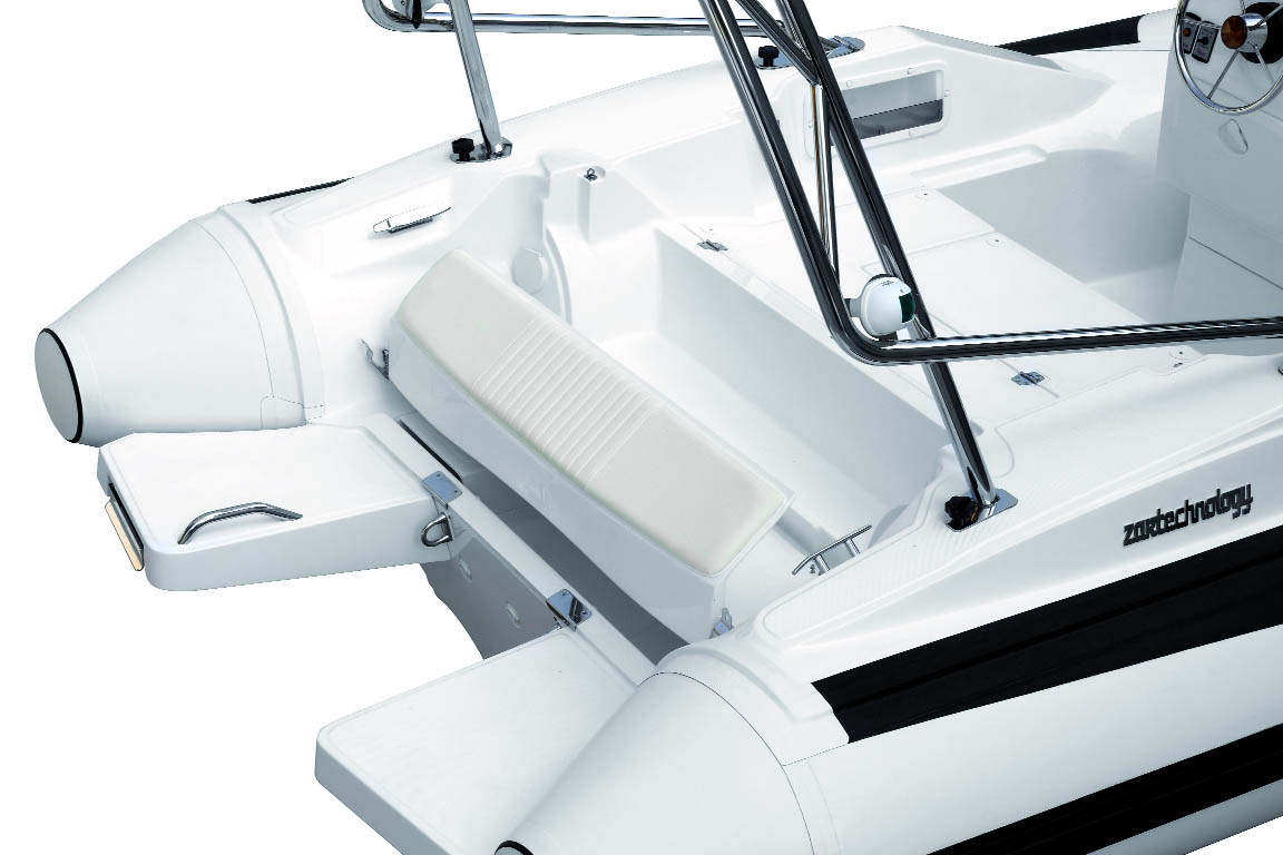 È indubbiamente un gommone sportivo, e lo si può facilmente capire dalla forma dei tubolari e dalla distribuzione dei pesi, ma non per questo rinuncia alla qualità, alla ricercatezza e alla cura dei dettagli tipica di tutte le produzioni Zar.