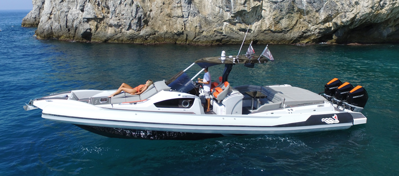L’ultima creazione del cantiere MV Marine farà il suo debutto al Cannes Yachting Festival 2019. Il gommone sarà esposto anche al 59° Salone Nautico di Genova.