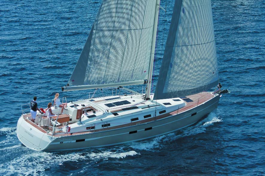 La scelta di installare la doppia timoneria permette di governare perfettamente l’imbarcazione anche in caso di mare formato. Il carrello del genoa è posizionato sulla parte superiore della tuga e le manovre sono riportate nel cockpit per una gestione facile e centralizzata della barca. Nei due gavoni laterali trovano comodamente posto due zattere di salvataggio; inoltre, per ripararsi dalle intemperie, sono disponibili un grande sprayhoods e un bimini, in una vasta gamma di colori.