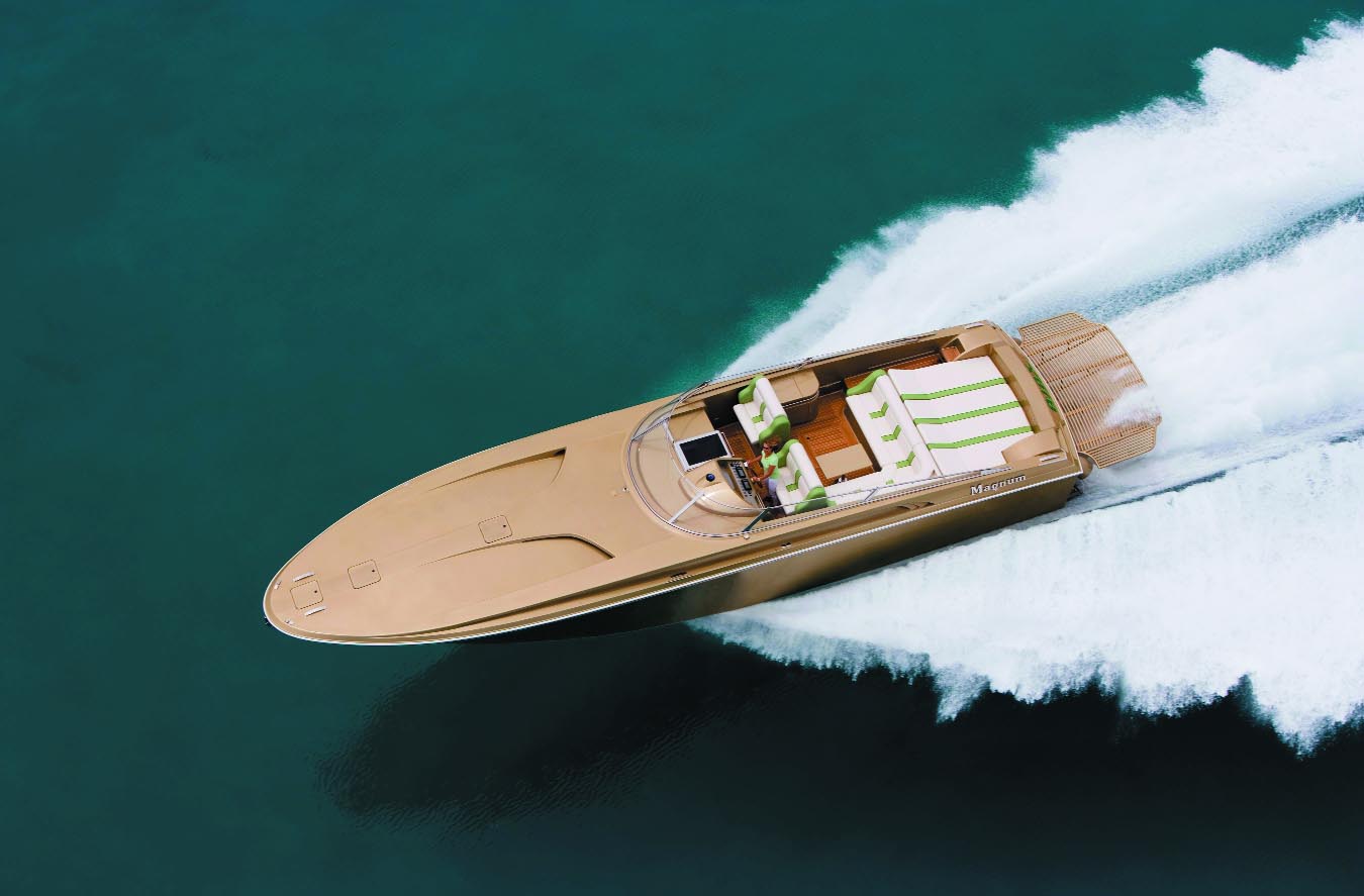 Tre gradini ci conducono alla zona sottocoperta dove troviamo un ampio tavolo con doppio divanetto, e, a destra, la cucina pratica e funzionale. Le ampie finestrature, presenti sia nella dinette che nel salone, garantiscono piena luminosità. La zona notte è composta da un grande bagno con box doccia ad accesso separato e dotabile di lavatrice, di fronte al quale è posta la cabina ospiti, con due letti singoli, mentre la cabina armatoriale con un grande letto matrimoniale (e accesso diretto al bagno) trova posto a prua. Anche qui, spazio e luce non mancano mai. Le opzioni a disposizione per quanto riguarda la propulsione sono due: un motore MO126K25-D a 6 cilindri e 120 hp di potenza, o due MO94K33 a 4 cilindri e 90 hp.