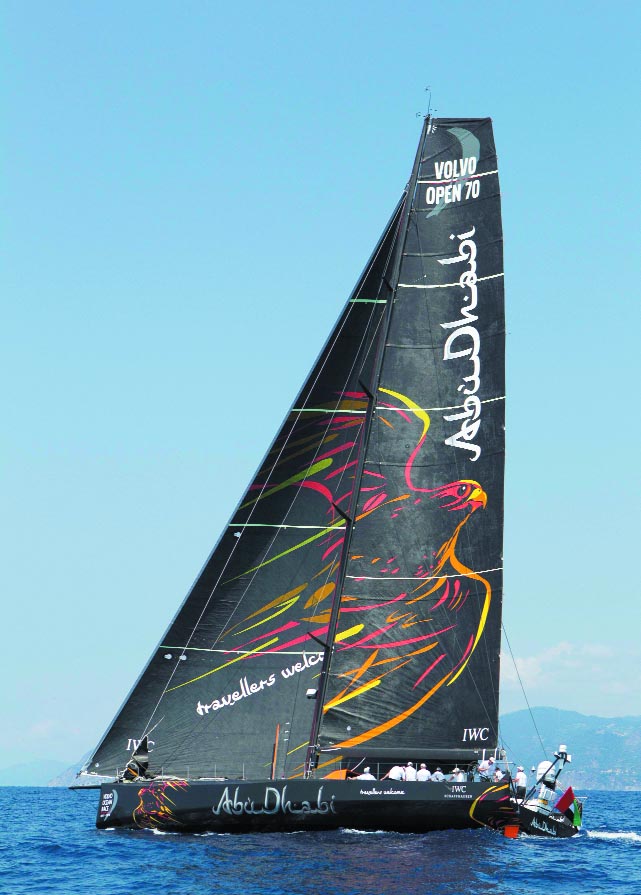 Varato a Portofino e costruito a Bergamo dalla Persico S.p.a., il Volvo Open 70 Racing Yacht è uno degli yacht più sofisticati degli ultimi tempi: caratterizzato da un falco fiero, il simbolo nazionale degli Emirati Arabi, che troneggia sullo scafo e sulle vele bianche, questo elegante yacht nero può ospitare al meglio tutti gli 11 componenti del team che il prossimo Ottobre partirà da Alicante, in Spagna, per la Volvo Ocean Race.