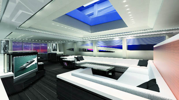 F40 è l’ultimo progetto firmato Vafiadis, in costruzione presso il cantiere Golden Yacht che, nel profilo elegante e deciso dei suoi 40 metri, offre un volume importante, una sovrastruttura bassa e filante e murate alleggerite dagli oblò laterali e dalle ampie finestrature.