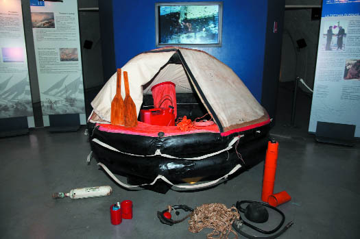 La zattera di Ambrogio Fogar approda nella sala della tempesta del galata museo del mare