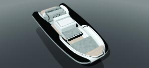Il tendalino parasole ombreggia sia il living che il materassino di poppa. La finitura degli interni è di alto livello, con essenze esotiche raffinate e complementi d’arredo di tendenza. Esprime le sue doti di navigazione con una carena derivata dal modello Lancia, capace di solcare anche il mare mosso a forte velocità, offrendo nel contempo comfort e sicurezza ai passeggeri. L’armatore può scegliere tra diversi impianti di propulsione, dai motori entrofuoribordo a benzina o diesel di Mercruiser, sino a una coppia di turbodiesel common rail da 480 cavalli di Fiat Powertrain Technologies, in abbinamento a trasmissioni di superficie.