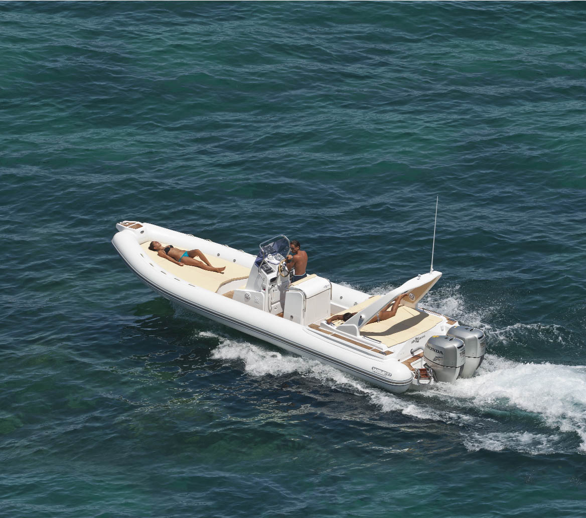 Le forme e i colori richiamano però l’epoca di “American Graffiti” e manifestano l’amore per una navigazione davvero elegante. La prora semicircolare e la perfetta rotondità del tubolare esaltano l’elemento pneumatico al pari delle sue colorazioni pacate, in tinte pastello tenui ma di forte effetto.