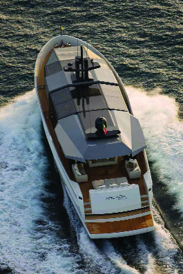 Il nuovo Atlantis 44 è caratterizzato dal particolare hard-top aperto sia davanti che sui lati, in grado di fornire comfort senza privare della bellezza del mare circostante.