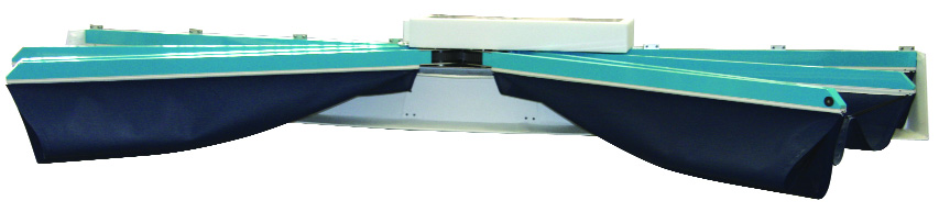 Un gruppo centrale raggruppa gli ingranaggi responsabili del movimento e della sincronia delle stecche che formano il ventaglio mediante movimentazione elettrica o idraulica. Ai due lati di questo gruppo, si protendono le stecche che, ruotando in senso speculare, vanno a formare un’unica porzione di copertura a 180°, la cui ampiezza sarà, ovviamente, proporzionale alla massima larghezza disponibile su fly o sulla tuga: in sostanza, il raggio del ventaglio sarà pari alla metà della larghezza a disposizione.