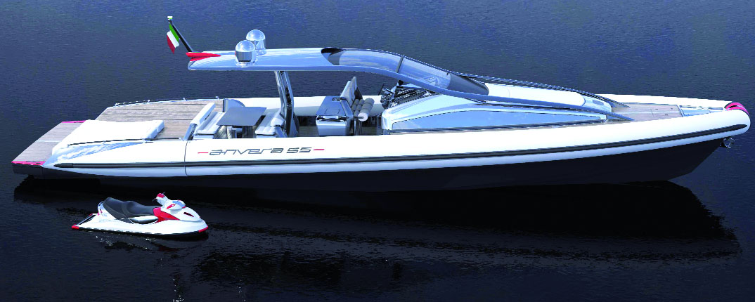 Dalla “terra dei motori“, ossia la Romagna, arriva un maxi rib considerato un pò la “Ferrari del mare“: è Anvera 55, il primo progetto della nuova linea di imbarcazioni di LG Technology Hub, realtà imprenditoriale guidata da Giancarlo Galeone, Luca Ferrari e Gilberto Grassi, che hanno scelto come partner tecnici per questo progetto Centrostiledesign e il designer Aldo Drudi, conosciuto per la realizzazione dei caschi di molti piloti di motociclismo come Valentino Rossi.
