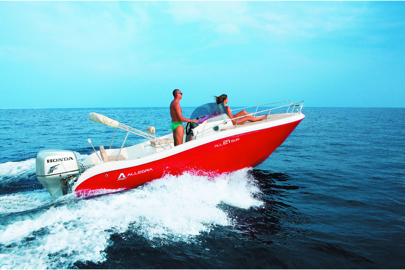In questa nuova versione si ha la cabina attrezzabile con toilette, un piccolo piano cottura e frigo bar ed il t-top rigido che offre il comfort di un’area al riparo dal sole durante le uscite giornaliere.