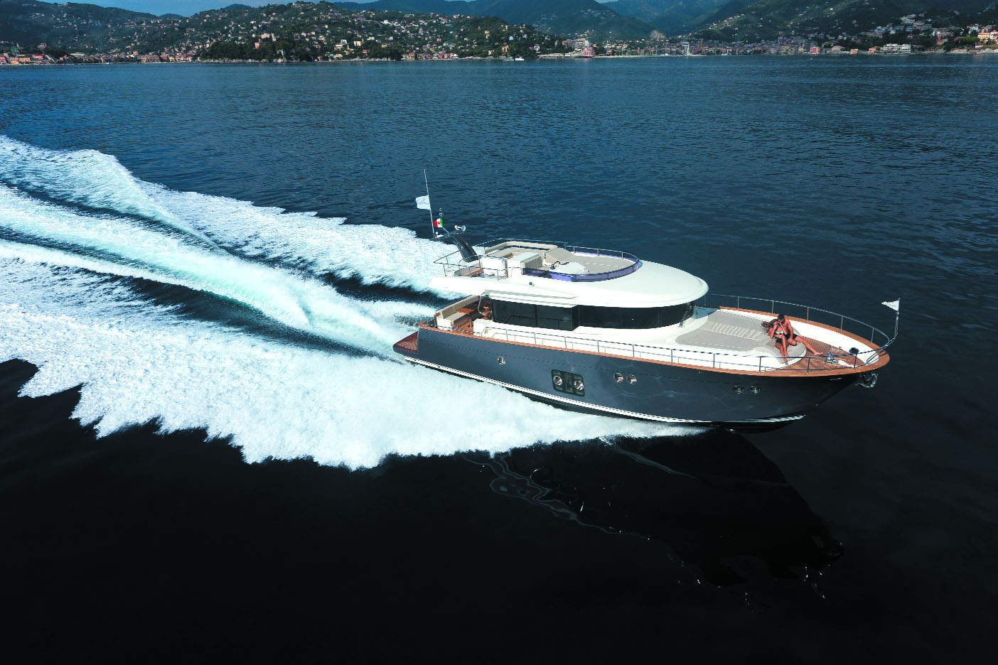 Lo yacht è nato con l’obiettivo di mantenere gli stilemi che da sempre hanno caratterizzato questo cantiere napoletano e l’utilizzando di nuovi contenuti innovativi. Massima è la trasparenza e continuità tra interno ed esterno, le vetrate hanno forma verticale tratto tipico della tradizione marinara, la scelta di volumetrie sia di scafo che di sovrastruttura tali da garantire un alto grado di comfort.