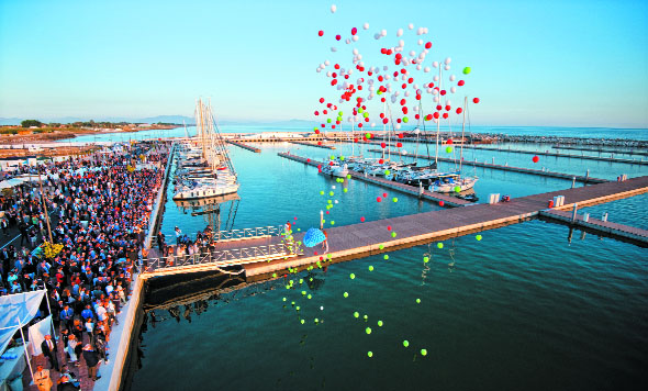 La cerimonia di inaugurazione del Marina D’Arechi si è tenuta il 7 giugno a Salerno dove si sono festeggiati i primi 480 posti. Più di 1500 persone hanno presenziato al taglio del nastro e sul palco insieme al Capo di Gabinetto del Ministro per la coesione territoriale Fabrizio Barca Alfonso Celotto, al Sindaco di Salerno Vincenzo De Luca e all’Amministratore delegato di Invitalia Domenico Arcuri tutta la squadra di Marina d’Arechi.
