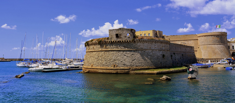 L’ultima tappa del nostro viaggio ci porta sul Mar Jonio. Gallipoli (dal greco kalè polis, “la bella città”) offre acque limpidissime, basse scogliere e spiagge bianche e sabbiose.