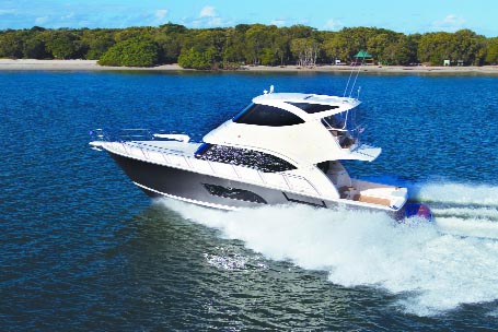 Il Riviera 53 IPS, nelle due versioni “enclosed fly bridge” e “open fly bridge”, ha un design che richiama con forza il modello del fisherman all’americana, ma gli interni e gli spazi sono sicuramente da cruise di alto livello. Sono presenti tre ampie cabine e due bagni completi di box doccia. L’ampio salone con annessa plancia di governo e cucina è in collegamento con il pozzetto, mentre sul fly troviamo la seconda stazione di governo con tutti i rinvii degli organi di manovra, oltre a spazio e mobilio dedicato al relax. La grande particolarità risiede nella presenza di una tripla motorizzazione IPS, grazie alla quale la potenza complessiva sale a 1.305 HP. Scheda tecnica: lunghezza f.t.: 18,20 m; baglio max: 5,13 m; peso a secco: 22,3 t; serbatoio carburante: 3.500 l; serbatoio acqua: 740 l; motorizzazione: 3×435 hp Volvo Penta accoppiati a trasmissioni IPS.