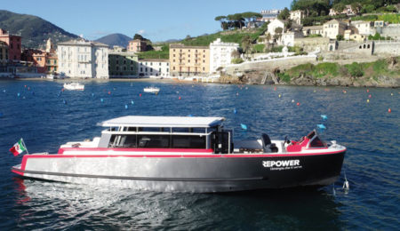 In Liguria, nella splendida cornice della Baia del Silenzio di Sestri Levante, il Gruppo Repower ha presentato la propria interpretazione di “navigare in elettrico”, proponendo un’imbarcazione di 10,5 mt di lunghezza e di 3 mt di larghezza, motorizzata con la sola propulsione elettrica per offrire uno stile di navigazione capace di suscitare nuove emozioni.