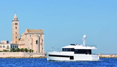 Quest’anno erano presenti tra i big, accomodati in uffici grandi, allestiti anche in una zona esterna privata e soprattutto con l’imbarcazione in acqua. Un’idea nata nel 2014, la cui parte progettuale è avvenuta nei primi mesi dell’anno e realizzata nel successivo anno, guadagnandosi in un palcoscenico importante come quello del Salone Nautico il premio Barca dell’Anno indetto dal magazine Vela e Motore.
