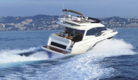 Ampio fly bridge, illuminazione in ogni angolo e comodità per tutti gusti. Il Prestige 520 si presenta all’insegna del relax per la massima comodità di bordo. Nella versione provata l’intera area esterna calpestabile è rivestita in teak. Attraverso un’ampia plancetta abbiamo accesso sul lato di dritta al pozzetto, molto semplice con un divano a L, al di sotto del quale è situata la cabina marinaio, piccola, ma con ogni comfort necessario.