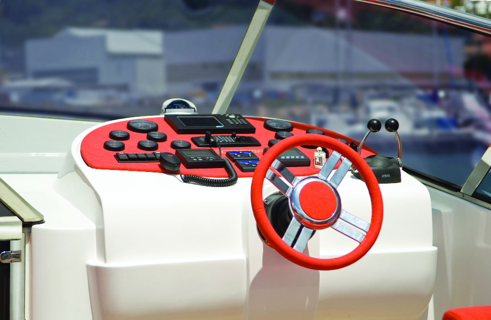 La plancia, molto ampia e perfettamente accessoriata, è completa di una ruota del timone che somiglia ad un volante automobilistico; mentre nello spazio sottocoperta troviamo una dinette corredata da un divano trasformabile in letto, una cucina, una cabina armatoriale e un bagno molto spazioso. Ed è proprio sul bagno che vogliamo soffermarci, per sottolineare il gran gusto che ha guidato le scelte stilistiche di questo ambiente.